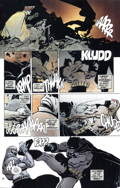 Batman constata que já não é mais o mesmo. Seu corpo não responde… ele se lamenta por ter sido brando demais com alguns criminosos que agora o cercam. Então, quando toma o controle da situação novamente, ele aleija um criminoso. Batman afirma sua superioridade e recupera parte de sua confiança em si mesmo ao fazê-lo.