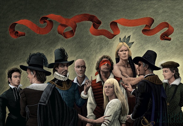A coisa mais próxima que a Marvel fez de um elseworld decente foi “1602,” escrito pelo grande Neil Gaiman. Transportando o universo Marvel para o fim do período elisabetano, Gaiman faz recriações bastante plausíveis, explicando a origem de cada herói como algo que transita entre a magia e a ciência. Sem nenhuma ligação com as publicações regulares, “1602” poderia constituir um universo à parte. Não sei se foi uma determinação editorial (quero crer que Gaiman teria planejado algo muito melhor e que foi rejeitado por algum sem-noção que calhou de ser o chefe no momento), mas lá está a tradicional volta à normalidade.