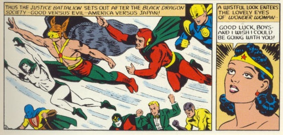 Mulher Maravilha: “Boa sorte, rapazes — eu gostaria de poder ir com vocês!”(All-Star Comics #??, 1942). E alguém duvida que a guerra teria terminado antes se ela tivesse ido?!