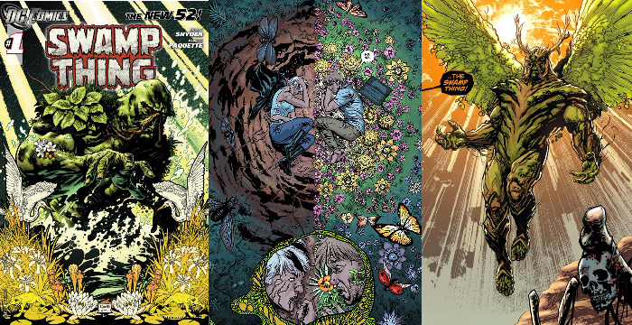 A arte impactante de Yanick Paquette, dividindo os quadros das paginas de forma orgânica e mais uma vez os roteiros inteligentes de Snyder que esconde o monstro por 6 edições até finalmente mostrá-lo no ápice de seus poderes elementais, são de tirar o fôlego. O conceito de Verde X Podridão que reintroduz modernizado o par romântico de Alec Holland e Abigail Arcane conduz esse terror vertiginoso e o cruza com o argumento do Homem Animal. Força total para esse personagem que já foi reinventado de forma inteligente algumas vezes.
