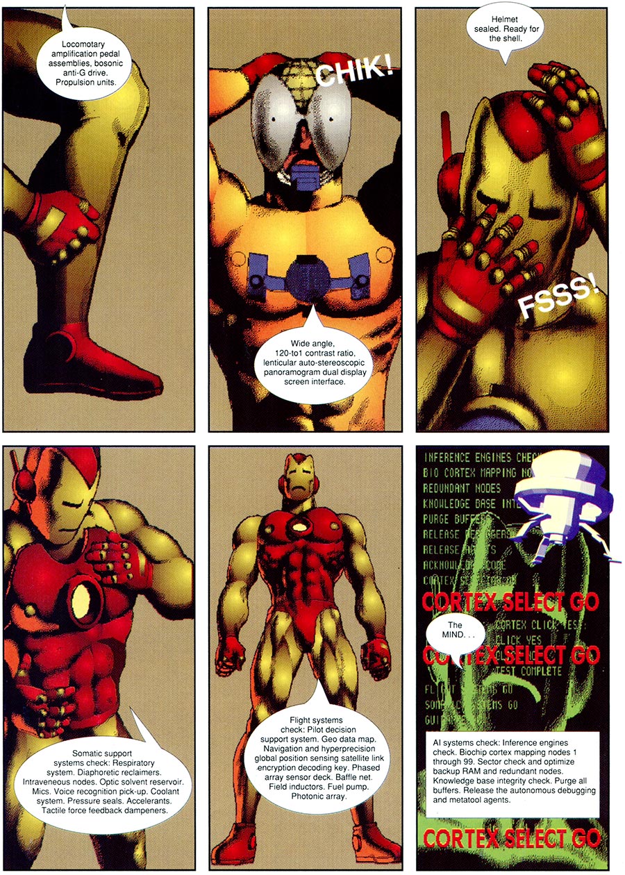 Umas das primeiras imagens que vieram a minha mente assim que anunciaram que sairia um filme do Homem de Ferro foi justamente os quadrinhos de GN, como todo o material para tornar o Sr. Tony Stark REAL já estava lá, pronto, bastando ao povo de Hollywood beber da fonte… Honestamente fiquei um pouco decepcionado ao não usarem alguns conceitos como por exemplo as “camadas” da armadura… De qualquer maneira o resultado foi muito bom, mas sinto que não aproveitaram todo seu “potencial”.