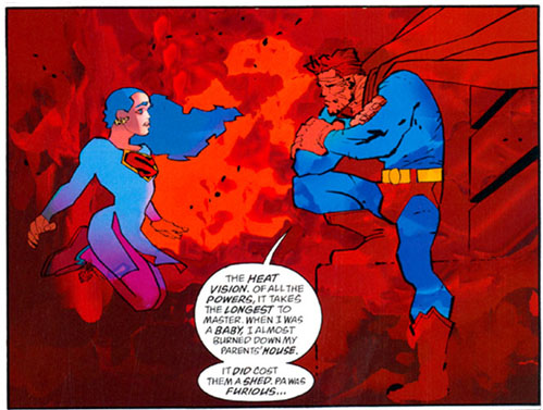 Esse é um aspecto pouquíssimo trabalhado no universo dos quadrinhos super-heróicos. Todas as minhas referências são de personagens humanas normais: Tex Willer confortando o filho Kit após a trágica morte do primeiro amor do rapaz, Jonathan Kent ajudando Clark a lidar com o fato de ser um outsider, sei-lá-quantas histórias da Turma da Mônica, etc.Jonathan_Kent_Earth-1_004