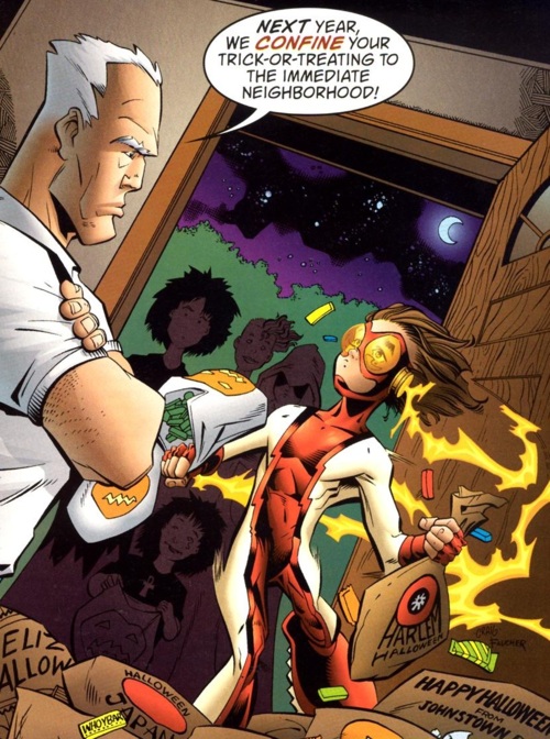 Parece haver uma certa incompatibilidade entre a carreira super-heróica e o papel paterno de ser suporte emocional dos filhos. Não é pra menos: super-heróis raramente têm chance de expressar as emoções. Ou, pelo menos, não vemos nada disso acontecendo nos gibis. Podemos supor que seja apenas uma parte da vida familiar desinteressante para nós leitores que os roteiristas simplesmente não mencionam?