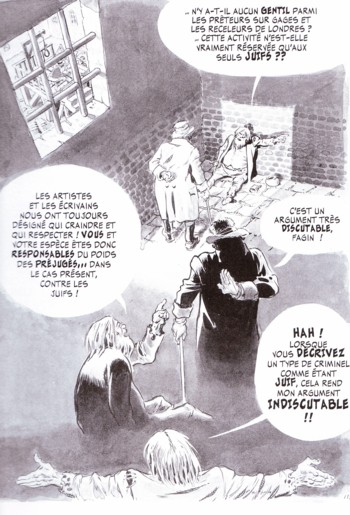 Ao término da trajetória de Fagin até a prisão, somos levados de volta ao diálogo ente ele e Dickens. Obviamente, o velho judeu é a voz através da qual Eisner defende sua tese e revela o objetivo de sua obra: Dickens retratou erroneamente os judeus na figura de um Fagin que não teve seu passado levado em consideração. Segundo Eisner, os membros “de uma raça pura, mas dispersa” são apenas sinônimos da criminalidade londrina na obra do britânico, que deixou de levar em conta as condições degradantes pelas quais eles teriam passado. Isso é um crime imperdoável para Eisner, como podemos observar na fala de Fagin contra Dickens: “Os artistas e os escritores sempre nos disseram em quem confiar e de quem ter medo! Você e os da sua laia, portanto, são responsáveis pela perpetuação do preconceito… neste caso, contra os judeus!”