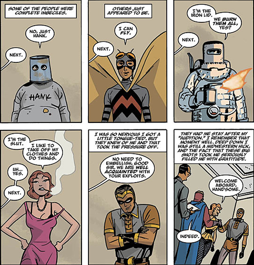 Foi interessante ver a trajetória dos vigilantes mascarados antes da obra-prima de Moore, mas só isso. Nada que despertasse a tensão ou a ansiedade por ler mais, nada que nos forçasse a revisar tudo aquilo que achávamos que tínhamos entendido. Foi como aquela aula de História em que o professor deixa tudo bem mastigadinho para aqueles alunos-toupeiras que não conseguem inferir por conta própria os aspectos mais simples do contexto por trás dos acontecimentos, enquanto o aluno nerd morre de tédio.