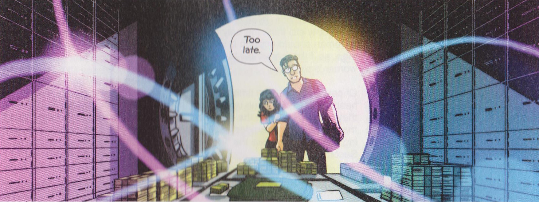 Mas óbvio que se a história parasse aí quase ninguém mais leria, pois ia parecer um daqueles romances baratos de banca de jornal ou um 50 tons de cinza versão sci-fi. A história vai além, e assim como qualquer um faria se tivesse poder, eles resolvem usar essa habilidade para atingir seus objetivos. Suzie quer salvar a biblioteca na qual trabalha, e para tal eles então resolvem assaltar um banco. Por isso o título! A série está ainda no quinto número e eu não vou contar mais detalhes para não estragar que resolver ler.