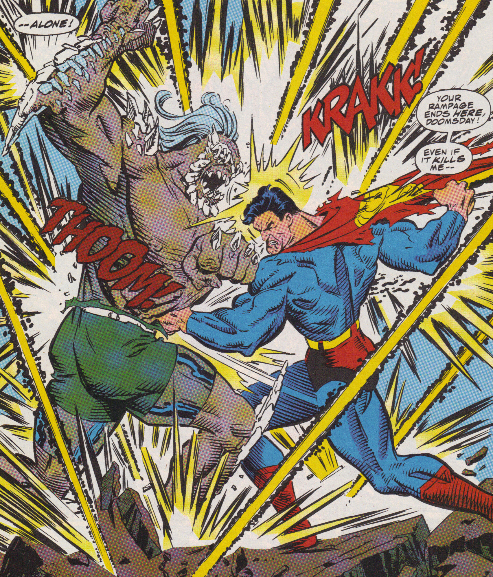 A Morte do Superman também foi mais um estardalhaço midiático que uma boa história.  Um novo vilão foi especialmente criado para a tarefa: Apocalypse. Uma batalha sem sentido nenhum nas ruas de Metrópolis e o Homem do Amanhã estava morto. Simples assim. Sem sentido assim. Mal o corpo do herói esfriou e já havia quatro candidatos para tomar seu lugar (Aço, Erradicador, Superboy e o Superciborgue). Óbvio que essa “morte” não seria duradoura e mais ou menos um ano depois o Super já estava de volta. Uma história no máximo mediana que já teve seu encadernado de luxo lançado por aqui e até uma animação.