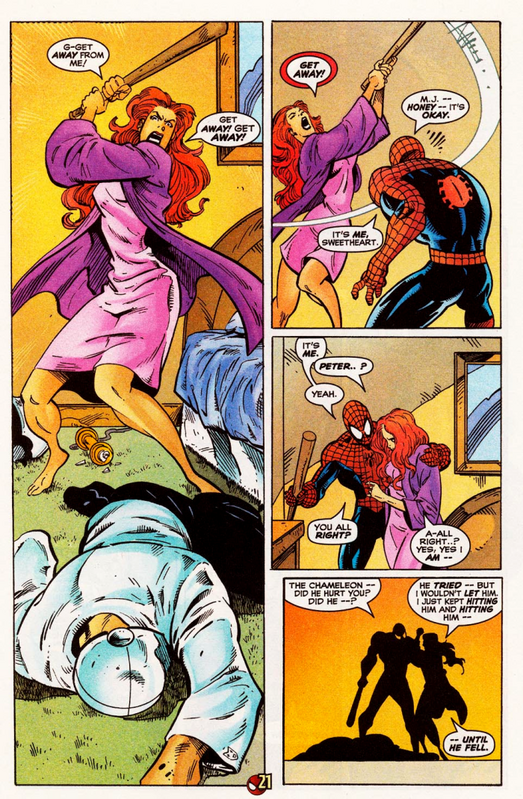 J.M. DeMatteis (que escreveu A Última Caçada de Kraven) assina essa história onde a guerra entre o Aranha e o Camaleão levam o vilão a atacar as pessoas próximas ao herói. Mary Jane percebe a trama e se defende, mas fica o trauma. Coincidência ou não essa história se chama Crise de Identidade.