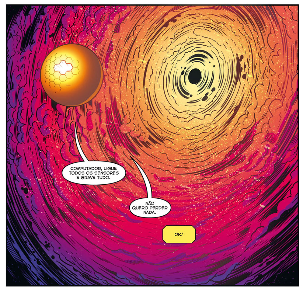 Em tese, heróis são figuras inspiradoras, modelos daquilo que todos nós deveríamos ser. Na prática, heróis são figuras únicas, raras, mesmo na realidade das histórias-em-quadrinhos. Por isso, Singularidade talvez seja um dos melhores títulos já criados para uma HQ. No primeiro nível da leitura, o título claramente se refere ao buraco negro, pano-de-fundo de mais uma aventura do Astronauta. Num nível um pouco mais profundo, ele trata do próprio Astronauta, que se configura como esse homem-imperfeito-mas-perfectível que é o Übermensch, uma pessoa única.