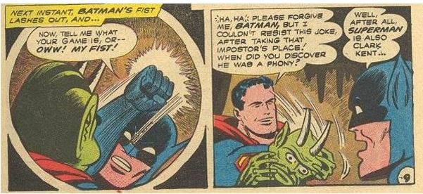 Nessa história da Era de Prata Superman não só derrota como alopra o Batman. Superman fica em um casulo por meses e, quando sai, finge ser um alienígena. Quando Batman descobre… bem… tarde demais. Maior detetive do mundo? Não dessa vez.