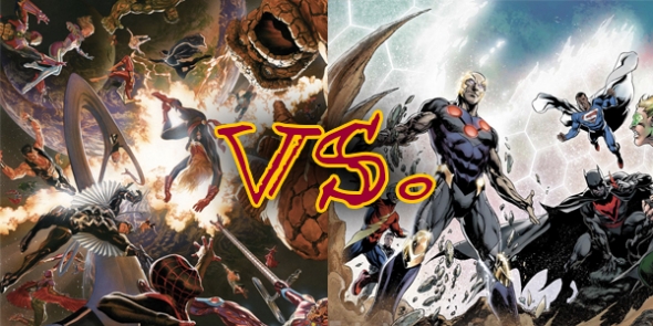 Já comentamos sobre essas sagas aqui e aqui. A mecânica é a mesma. Na CONVERGÊNCIA da DC Comics, diferentes cidades de diferentes Terras, são sequestradas e levadas para um outro planeta pelo vilão da vez, ficam 1 ano debaixo de um domo indestrutível com seus heróis sem poderes até que os domos caem, os poderes retornam e essas várias versões de heróis são jogadas umas contra as outras. Nas GUERRAS SECRETAS da Marvel a colisão/extinção das diferentes Terras levam um vilão clássico a criar um novo planeta com as sobras desses mundos. Apenas uns poucos guardam a memória do que aconteceu. Todos os outros veêm esse vilão como um deus e acreditam que as coisas sempre foram como estão. Em resumo: é a velha fórmula de jogar heróis uns contra os outros, só que em cenários mais elaborados e tramas mais complexas.