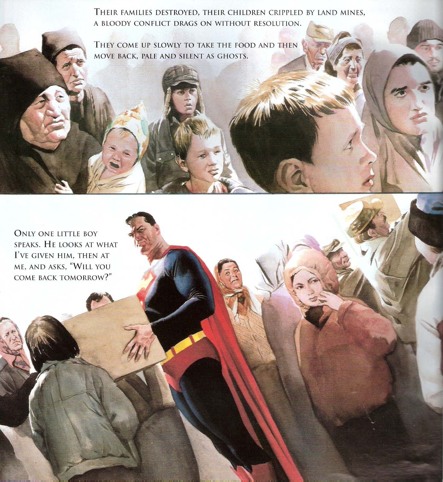 Imaginemos um leitor do quadrinho Superman – Paz na Terra, de Paul Dini e Alex Ross. A história mostra o Superman lidando com um problema muito concreto: a fome. O que os poderes do Superman poderiam fazer para acabar com a fome no mundo? Muito pouco. No entanto, imaginemos um leitor hipotético que, depois de ler o quadrinho fosse fazer algum trabalho voluntário, por exemplo, fornecendo alimentos a moradores de rua. Não seria o quadrinho em questão um exemplo de “arte engajada”?