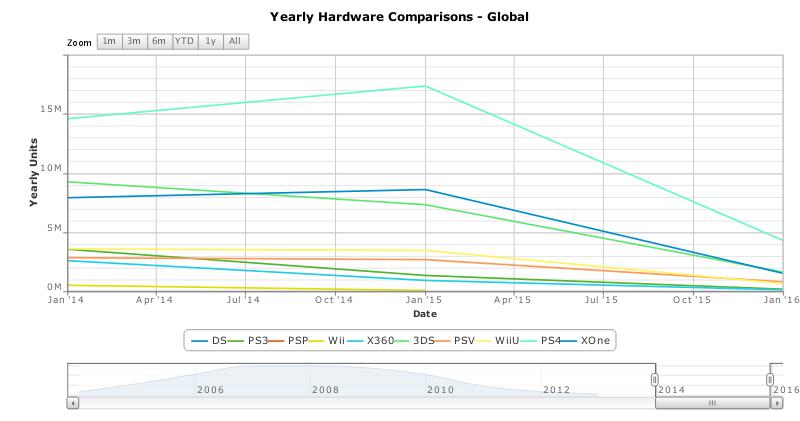 Gráfico gerado no http://www.vgchartz.com/. Para os jogadores interessados em compreender o mercado, uma excelente fonte!