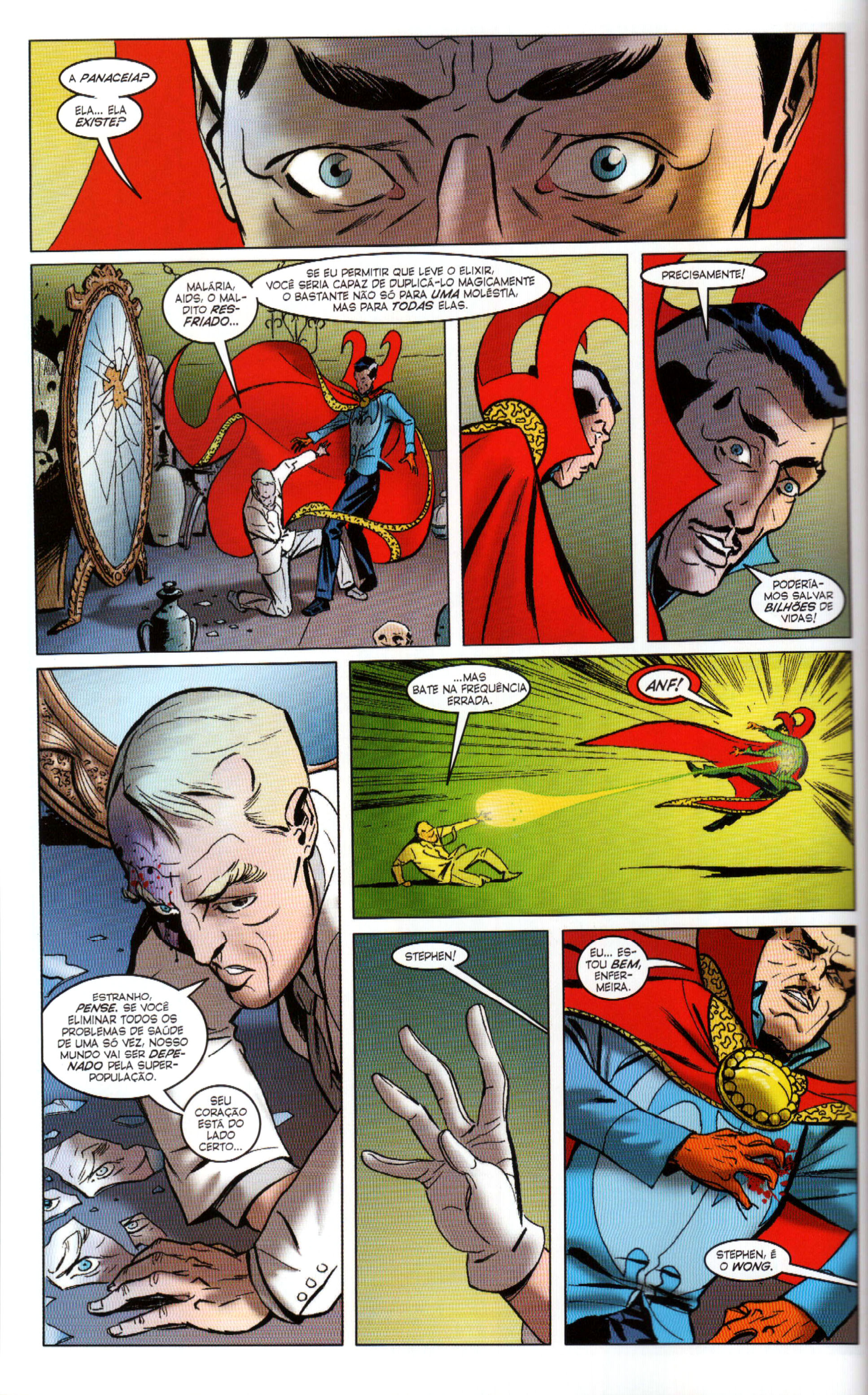 A grande questão: ajudar toda a humanidade ou abster-se? Será que é realmente interessante interferir dessa forma no destino da humanidade? Caso Strange ofereça esse elixir para as pessoas, qual seria o prejuízo da superpopulação no planeta? Fome, desmatamento, falta de água, são tantas dúvidas que necessitaríamos de uma análise específica para saber a quantidade de problemas e o real impacto que trariam para o mundo. Apesar de tudo, Stephen sabe o sofrimento que uma doença traz à vida de uma pessoa, ele finalmente poderia curar desde uma gripe até o tipo mais raro de câncer existente no mundo sem nenhum sofrimento do paciente.