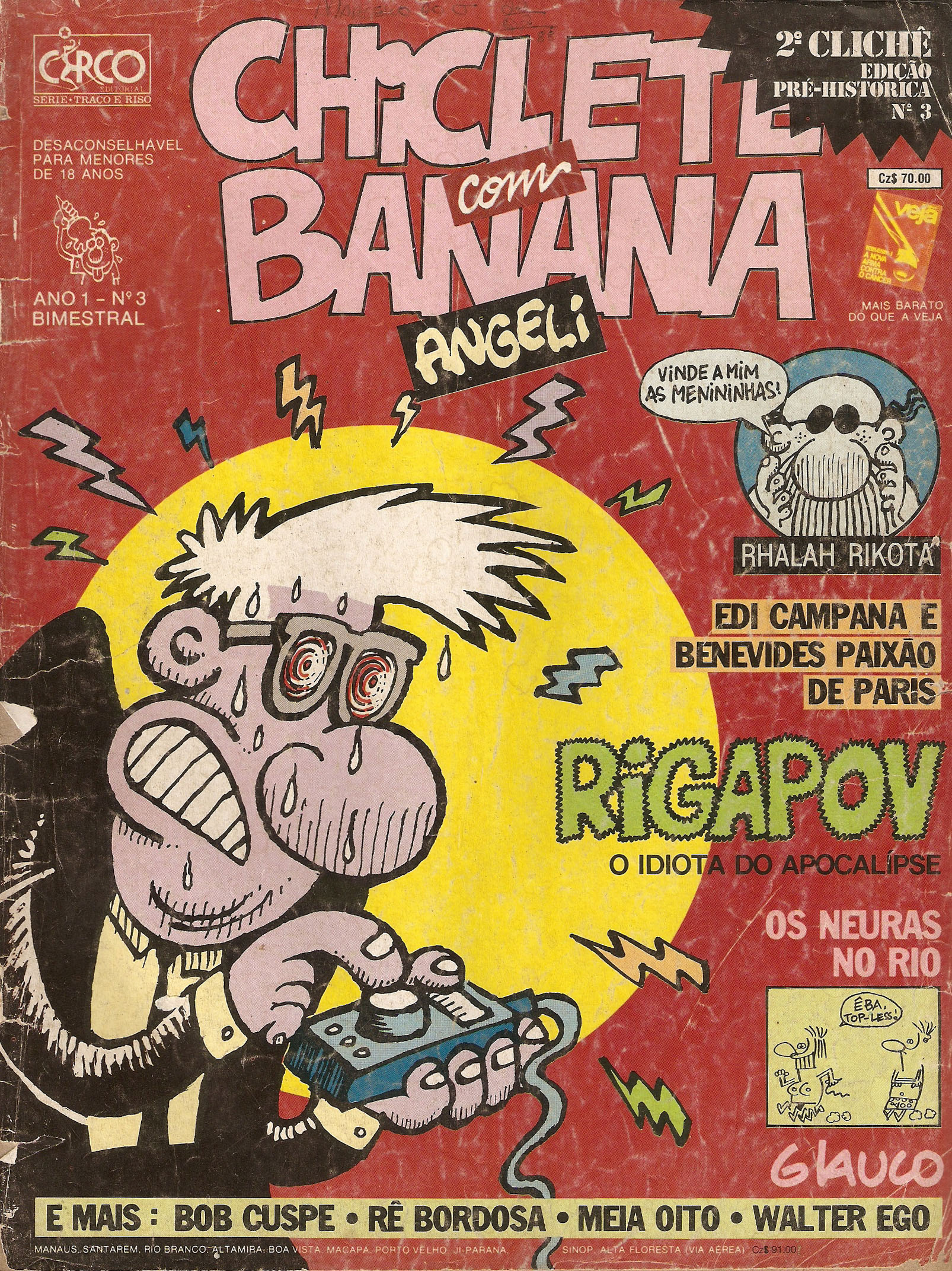 Enquanto figurões como Luiz Gê e Laerte faziam a revista Balão na USP, Angeli já publicava na Folha de São Paulo e Toninho já desenvolvia sua carreira no mundo editorial. Mas ainda faltava espaço consolidado. Faltava estar nas bancas. Foi dessa gana que se juntaram e começaram a experimentar. O “ariete” foi a Chiclete com Banana. Encabeçada por Angeli, a revista tinha o máximo concebível de formatos e de liberdades. Lá ele pôde consolidar seus grandes personagens que já pipocavam nas tiras homônimas publicadas no jornal. Rê Bordosa, Bob Cuspe, Mara Tara, Meia Oito, Escrotinhos, Wood e Stock…