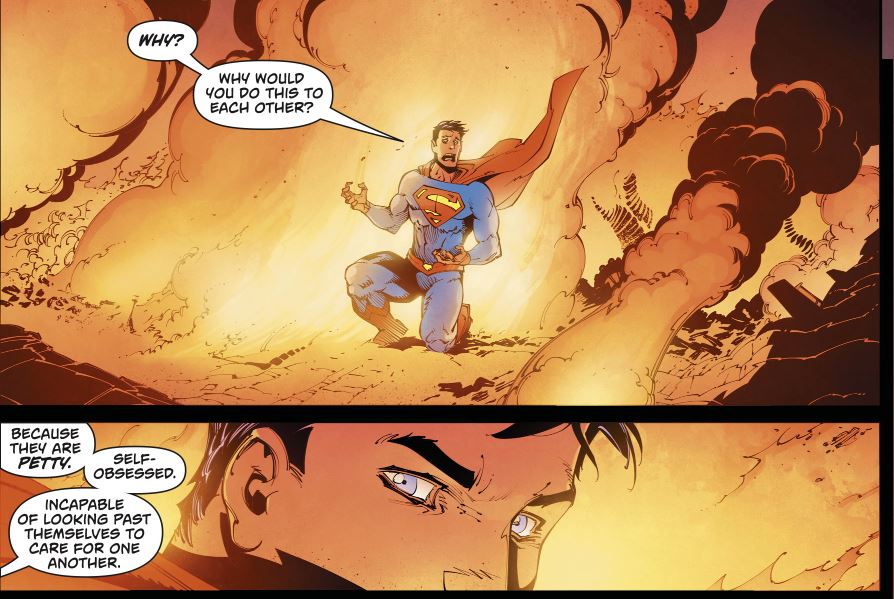 Superman: Por que? Por que fariam isso uns com os outros? Mr. Oz: Porque eles são pequenos. Obcecados consigo mesmos. Incapazes de olhar além de si e se importar com outros.