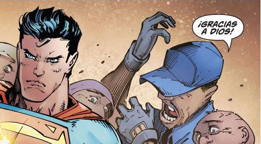 Esse comentarista mostra que não leu a HQ. Na história, o homem que ameaçava as pessoas que não falavam inglês não era representante de uma força legal, era um trabalhador que se ressentia porque achava que aquelas pessoas o tinham feito perder o emprego. Inclusive, após o Superman salvá-las, ele pede aos policiais que as protejam. Mas isso não é o pior erro de interpretação.