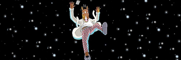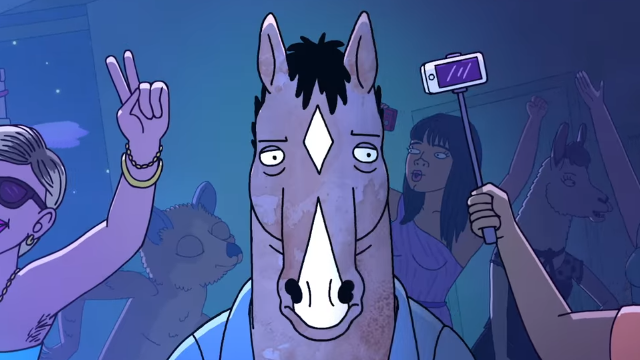 O seriado em questão é BoJack Horseman, produção original da Netflix que chegou à sua quarta temporada em setembro deste ano. Centrado em uma Hollywood onde pessoas dividem espaço com animais humanizados, o desenho acompanha o personagem título, estrela de um famoso sitcom familiar nos anos 90 chamado Horsin’ Around, em que um cavalo adotava e criava 3 órfãos. Durante as 3 temporadas anteriores, acompanhamos BoJack em sua tentativa (bem-sucedida) de voltar a ser relevante e (mal-sucedida) de se tornar um ser humano/equino melhor.