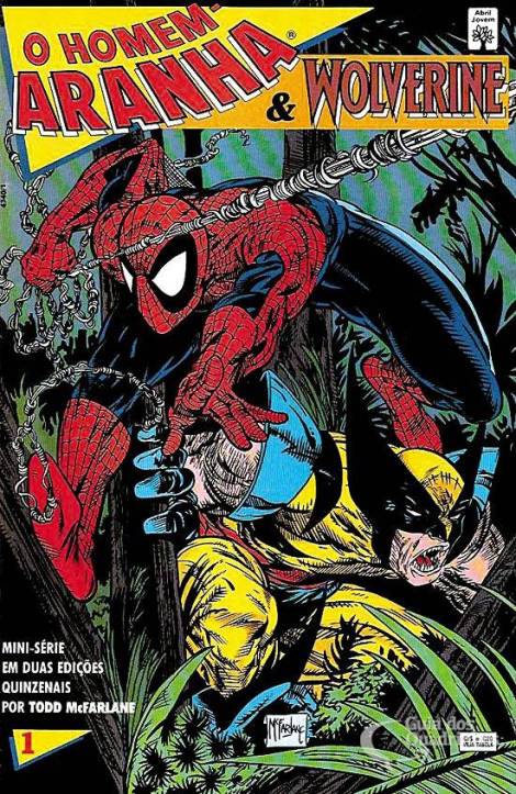 Homem-Aranha & Wolverine #1 (Spider-Man 1990 #8 nos EUA) de Todd McFarlane e cores de Gregory Wright