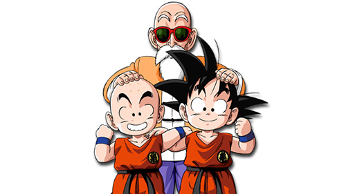 Nessas histórias, o maior artista marcial da Terra vivia tranquilo e contente na sua ilhota. Passa seus dias fumando cachimbo e vendo filmes de sacanagem. A paz é rompida pela chegada de Goku e Kuririn ainda crianças, ávidos por aprender a técnica invencível do Kamehameha.
