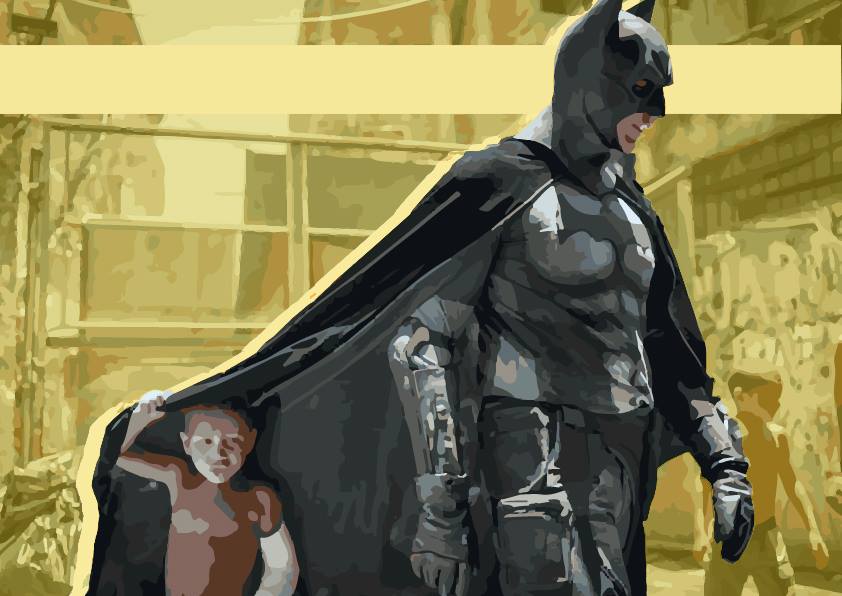 Ela não entendeu. Não é o Batman-Batman, aquele que é rico pra caramba e não tem que pegar dois ônibus pra trabalhar num cartório. Olha lá, minha vizinha Emília levantou a mão, e agora?