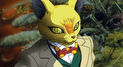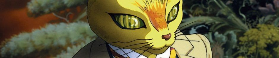 Um gato motivador que circula entre dois filmes do Studio Ghibli.