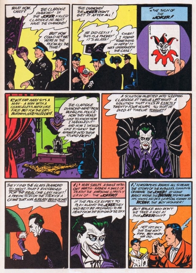 Criado por Jerry Robinson em junho de 1940 e lançado na edição n.1 da revista Batman, o Coringa foi concebido à imagem e semelhança do ator alemão Conrad Veidt. Em especial, quando interpretou o personagem Gwynplaine, herói do filme mudo de 1928, O Homem que Ri, adaptação do romance escrito por Victor Hugo.