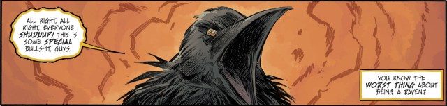O corvo Matthew, que atravessa e costura as cerca de quatro linhas de enredo que compõem a edição.