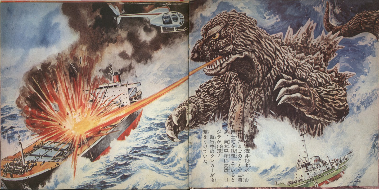 Esse monstro surge para devastar a Terra. Sua aparição é na maior metrópole do Japão, Tóquio, e não nas cidades atingidas pela bomba atômica, Hiroshima e Nagasaki. O motivo talvez se dê pelo fato de Tóquio ser o centro do desenvolvimento tecnológico (também perto do Monte Fuji) e sediar diversas atividades internacionais como as Olimpíadas de 1964 e 2020 e ter a maior concentração de pessoas.