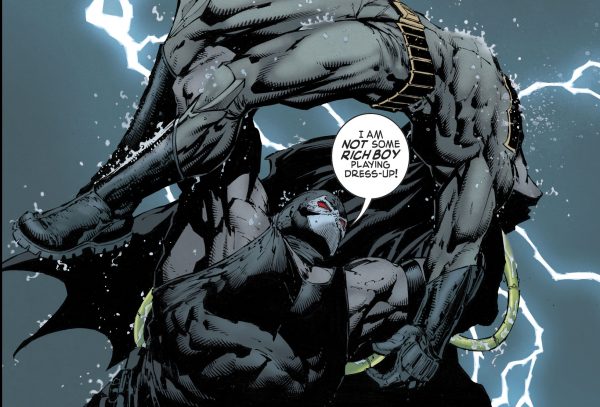 - A quebra do Batman em Knightfall ou “A Queda do Morcego” (1993-1994) de Dennis O’Neal e Jim Amparo, e que ressoa como tema no arco Eu sou Bane, de Tom King (2017)