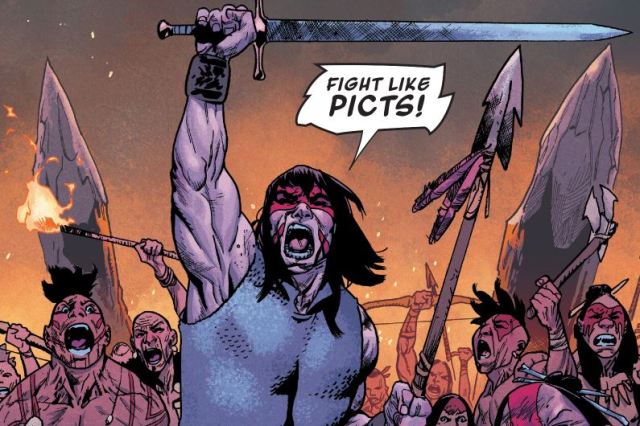 Mas, na história de Aaron, Conan vive por um tempo entre os pictos e passa a respeitá-los como iguais, reconhecendo neles um povo bárbaro, assim como os cimérios, tornando-se, ainda que por um breve momento, um deles.