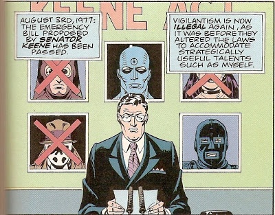 7. Quando o Coruja, Rorschach e Sally Jupiter violaram a Lei Keene, que colocava os heróis mascarados na ilegalidade, ao voltar à ação em Watchmen, de Alan Moore e Dave Gibbons (1986).