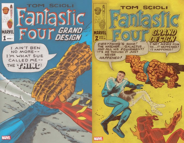 O resultado agradou tanto que além de novos Grand Design dos X-Men (sempre pelas mãos de Ed Priskor), a Marvel convidou o cartunista Tom Scioli pra fazer a mesma coisa com o Quarteto Fantástico. Scioli é o ilustrador de Godland (Image Comics, 2005), uma história de super-herói bem-humorada, que presta homenagem às sagas cósmicas criadas por autores como Steve Engelhart (Dr. Estranho), Jim Starlin (Adam Warlock) e Jack Kirby, nos anos 1970. A arte de Scioli nessa série é uma homenagem ao Quarto Mundo e aos Eternos de Kirby. Mais recentemente, Tom Scioli produziu uma biografia em quadrinhos do seu grande ídolo – Jack Kirby: The Epic Life of the King of Comics.