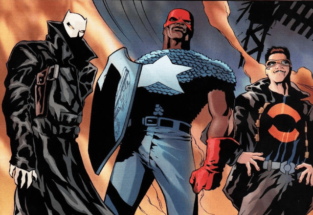 O primeiro (e único) arco apresenta a cada edição um personagem desse novo grupo de heróis. Começa com James Rhodes (Máquina de Guerra), desempregado e falido, tendo que lidar com a morte de sua irmã, vítima do crack. Na sequência conhecemos Junta (o ex agente secreto Danny Vicente), e o Tigre Branco (o policial Kasper Cole), ambos personagens coadjuvantes do longo arco de Priest no Pantera Negra. E por fim o ativista Josiah X, membro de uma organização semelhante à Nação do Islã e do Partido dos Panteras Negras (emulando a figura histórica de Malcom X). Josiah é filho de Isaiah Bradley, o Capitão América negro. Usando o uniforme que foi do seu pai, ele é conhecido como Justiça.