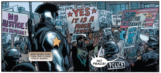 O argumento é que nos diálogos entre os personagens negros havia a ideia de uma segregação dos negros em relação aos brancos, já que a convivência é sempre marcada pela violência e a opressão. Racismo contra os brancos, disse “o público”. Mas para além da reação dos raivosos que não querem ler histórias com conteúdo político (como se fosse possível uma coisa dessas), o que chama a atenção é a distância entre dar voz para toda a diversidade que compõe o tecido social norte americano (coisa que a Marvel faz desde seus primórdios), e fazer de fato essas vozes serem ouvidas pelo público consumidor.