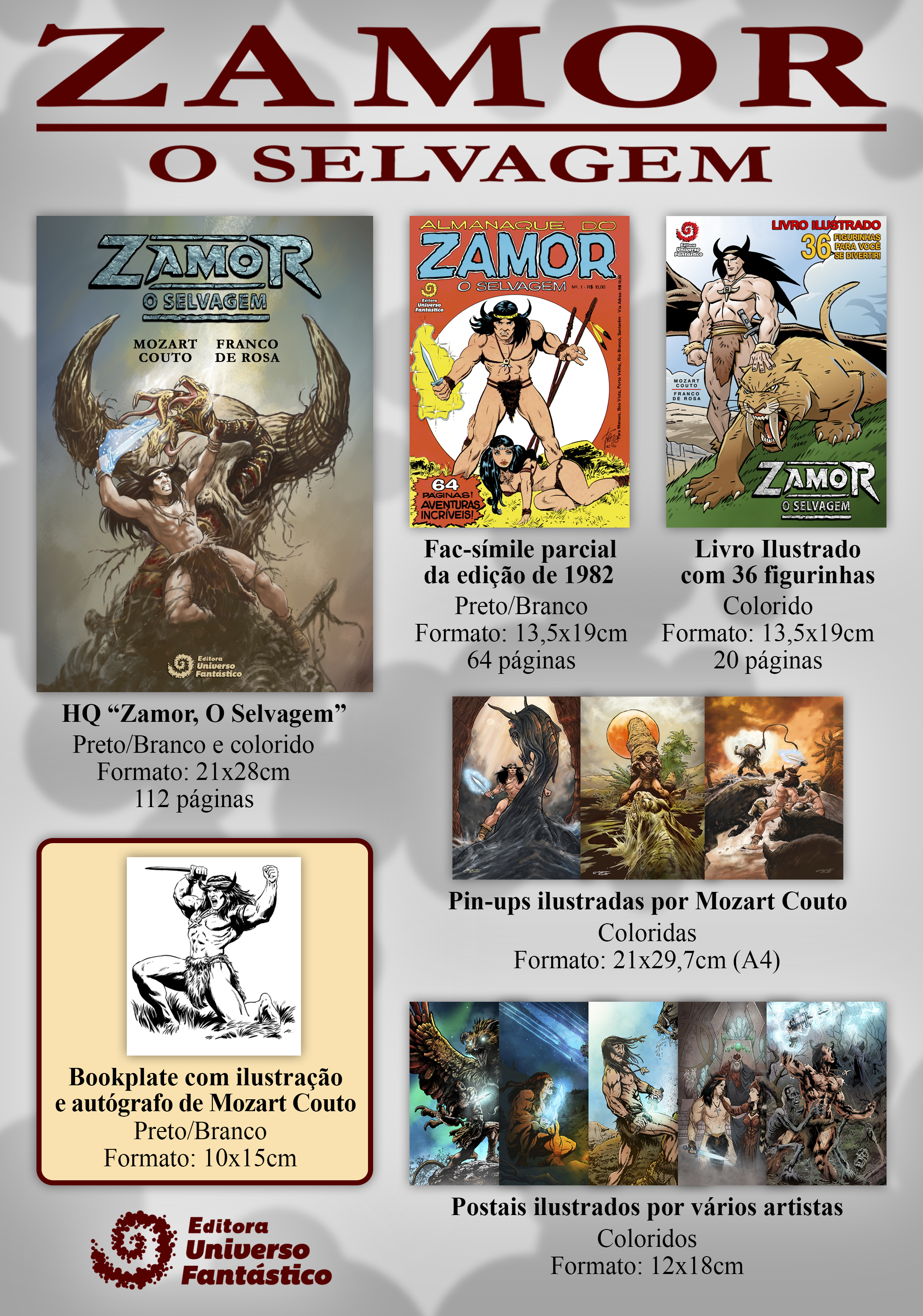 Franco de Rosa (FR): Ao conversar com o Roberto e o Vinicius da Editora Universo Fantástico, batendo papo, e sabendo do sucesso da campanha de lançamento deles, o Maximus, levantamos a possibilidade de lançar personagens que eu havia lançado na Grafipar de Curitiba, como Zamor, Ultraboy e Fargo. Como Roberto adquiriu uma edição original do Zamor, e se interessou pelo personagem, tratamos de consultar o Mozart para relançar a edição. Mozart se entusiasmou com a real possibilidade de termos o Zamor de volta. E se dedicou tanto que resolveu fazer uma nova arte-final para a primeira história publicada no Almanaque Zamor, o Selvagem da Grafipar.