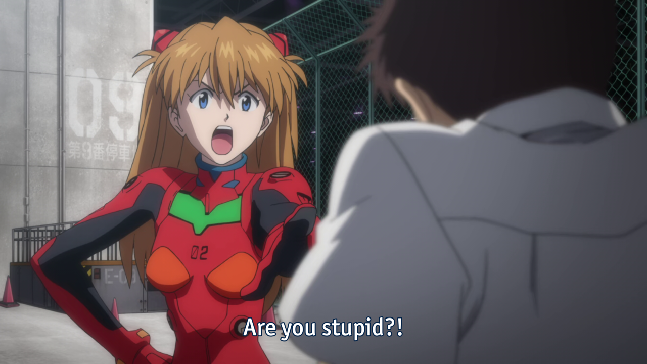 Assim como no final da série original, existe o aspecto “objetivo” da narrativa. Há robôs gigantes lutando. Mas as batalhas, visualmente confusas, aceleradas e complexas, são entremeadas por frames estáticos e de fundos oníricos. A bordo do EVA-01, Shinji enfrenta – e finalmente compreende – seu pai, ele mesmo o último anjo. Enxerga a dor esmagadora da perda da esposa e a necessidade impávida por controle e auto-isolamento. Assim, ao entender o pai, Shinji se reconhece.