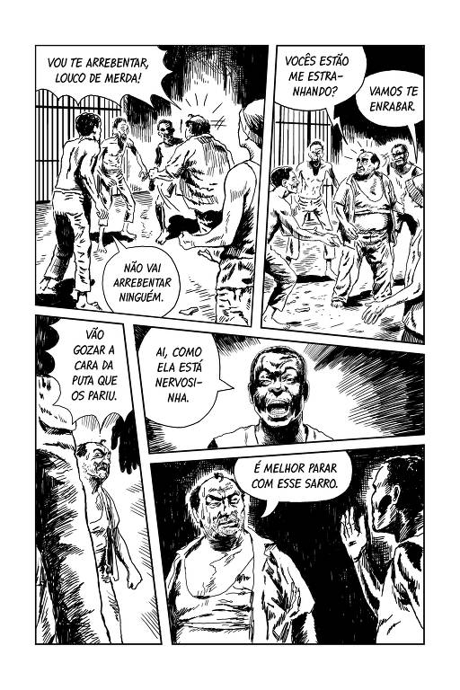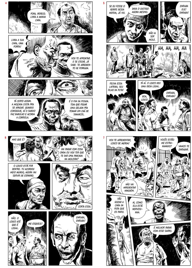 João Pinheiro novamente aborda temas pesados, relatando o cotidiano deplorável de uma parte ignorada da sociedade. Portanto, Pinheiro sabe muito bem onde está pisando no desenvolvimento da história como narrativa gráfica. A tensão criada pelas páginas, pelo traço pesado e pela ausência de cores estabelece o clima ideal para esta história completamente desesperançosa. É perceptível que o autor entende as nuances desse tipo de relação, que é tão presente em parte da nossa literatura.