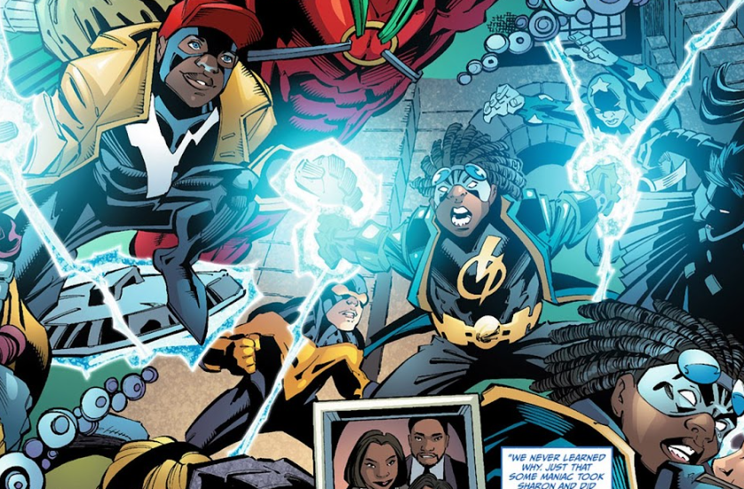Em Static # 2 (1993), acompanhamos a vida escolar do adolecsente Virgil Hawkins que apanha de um membro de uma gangue racista chamado Biz Money. Cansado de ser espancado,Virgil consegue uma arma e segue Biz até o ponto de encontro da gangue. Diante da possibilidade real de ferir ou matar alguém, Hawkins recua. Ele joga a arma no mar e decide ir para casa, mas nesse momento a polícia chega e nocauteia todos com um gás experimental que serviria para marcar os “bandidos”. Todos ficam desacordados, menos Virgil, que ganha poderes elétricos. Diferente de outros heróis como Flash e Lanterna Verde, a história de origem de Super Choque é resultado de um contexto social, e traz para os quadrinhos temas como bullying, acesso à armas de fogo, gangues, violência policial e ausência do Estado.