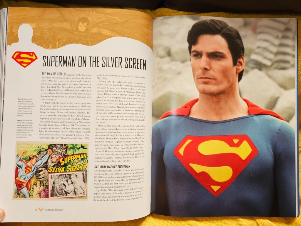 A parte dedicada a Superman: The Movie (1978) é um primor. As imagens de bastidores, os rascunhos de produção, as entrevistas com Donner e a equipe, tudo contribui para mostrar o quanto aquele filme não apenas revolucionou os filmes de super-herói, mas consolidou uma versão definitiva do herói para milhões de pessoas. A análise das sequências posteriores como Superman II, III, IV. E pontuando que a obra não ignora os tropeços criativos, mas também não adota cinismo barato. O livro opta por uma leitura generosa, entendendo os filmes em seus contextos de produção e recepção respeitando o anacronismo.